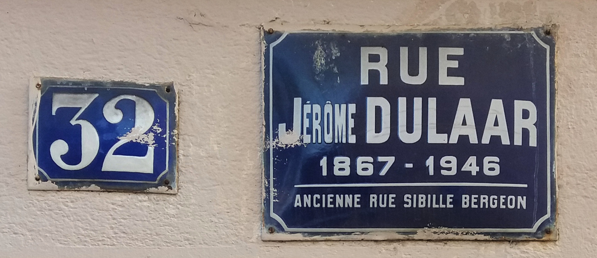 Photo de la plaque de rue Jérôme Dulaar : Romain Behar et Jérôme Villafruela - CC0